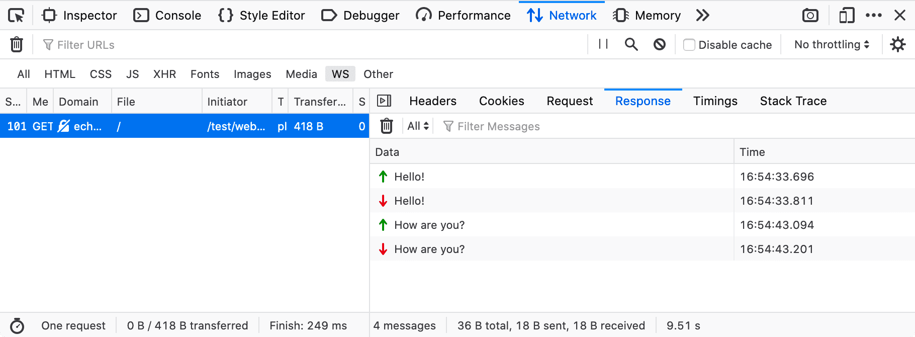 As mentioned earlier, this is a two way connection. Which means the server can push events to the client without being requested for one.